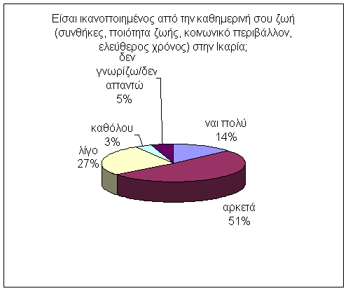 Ερώτηση: Είσια ικανοποιημένος από την καθημερινή σου ζωή (συνθήκες, ποιότητα ζωής, κοινωνικό περιβάλλον, ελεύθερος χρόνος) στην Ικαρία;